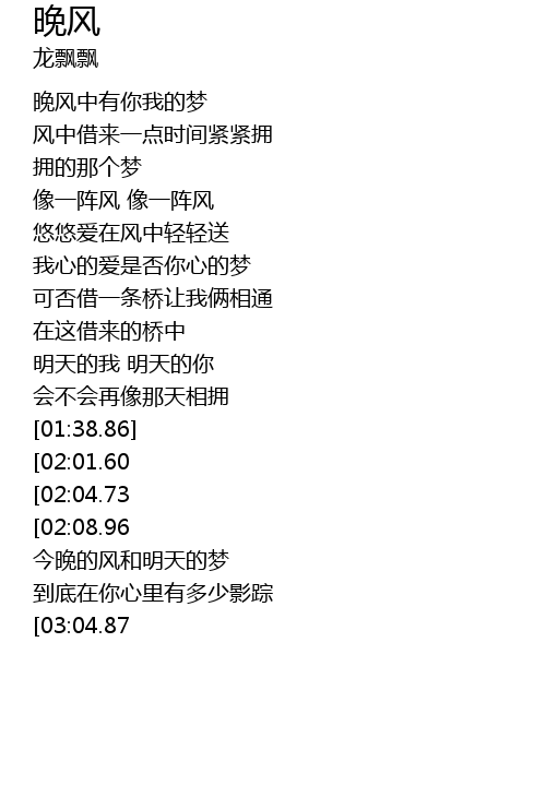 | [02:26.44] | 今晚的风和明天的梦 |