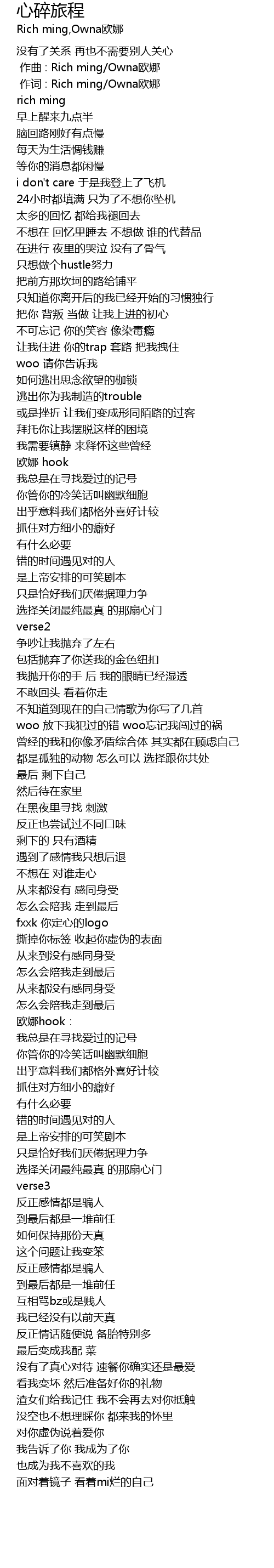 | [00:01.000] | 作词 : Rich ming/Owna欧娜 |