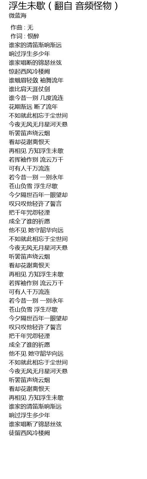 | [00:01.000] | 作词 : 恨醉 |
