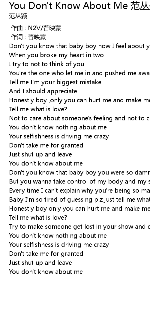 | [00:14.56] | Don' t you know that baby boy how I feel about you? |