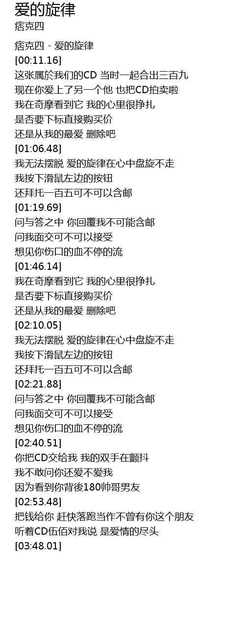 | [00:01.33] | 痞克四 - 爱的旋律 |