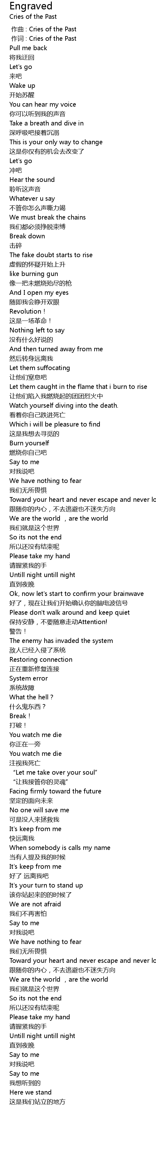 | [00:01.000] | 作词 : Cries of the Past |