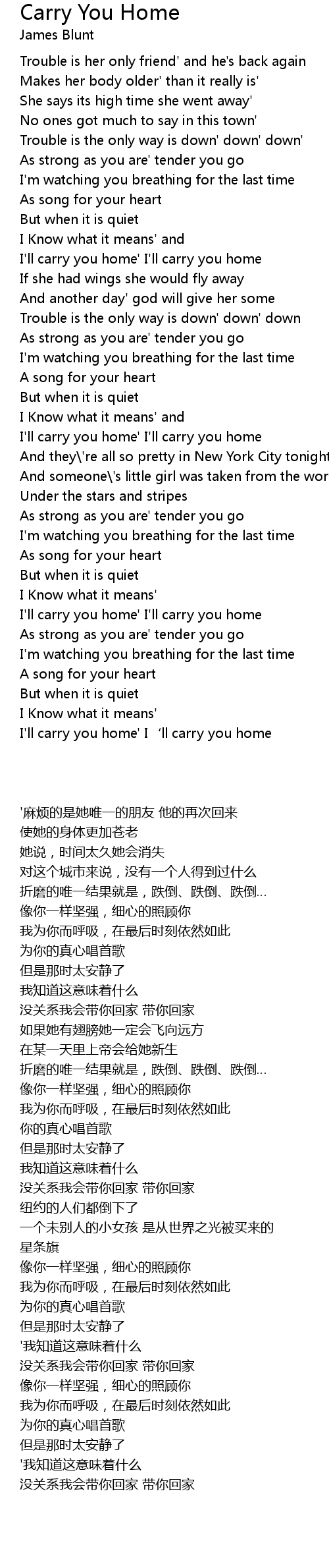 | [01:16.130] | I' ll carry you home' I' ll carry you home |