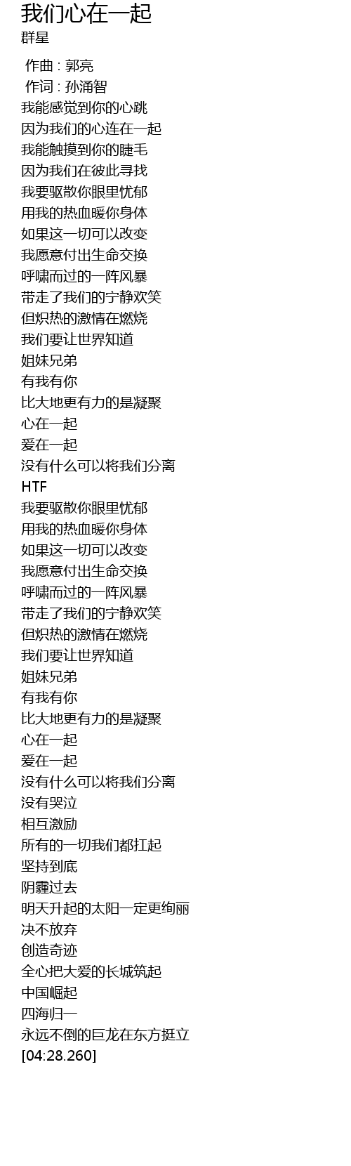 | [04:05.740] | 全心把大爱的长城筑起 |