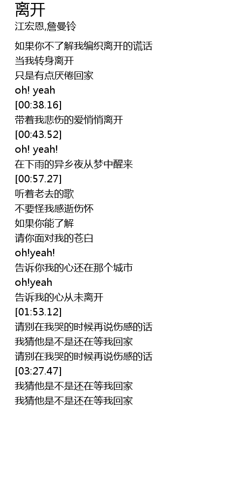 | [00:39.47] | 带着我悲伤的爱悄悄离开 |