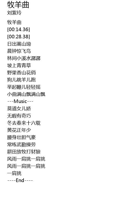 | [03:06.91] | gēng tián fàng mù dǎ chái láng |