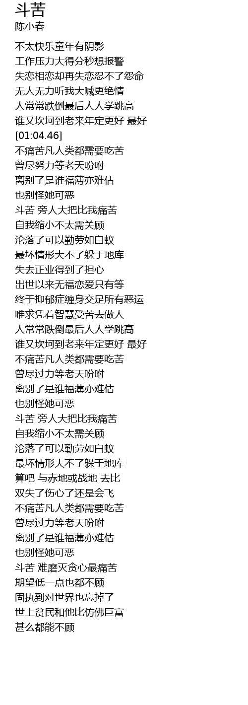 | [02:46.65] | dòu kǔ páng rén dà bǎ bǐ wǒ tòng kǔ |