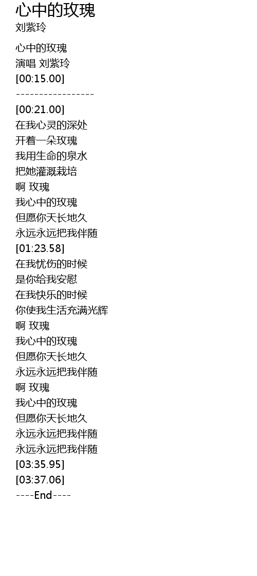 | [01:15.69] | yǒng yuǎn yǒng yuǎn bǎ wǒ bàn suí |