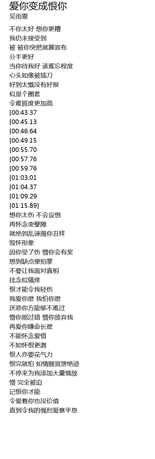 | [02:01.11][00:55.70] | 我憎你不停来为我 |