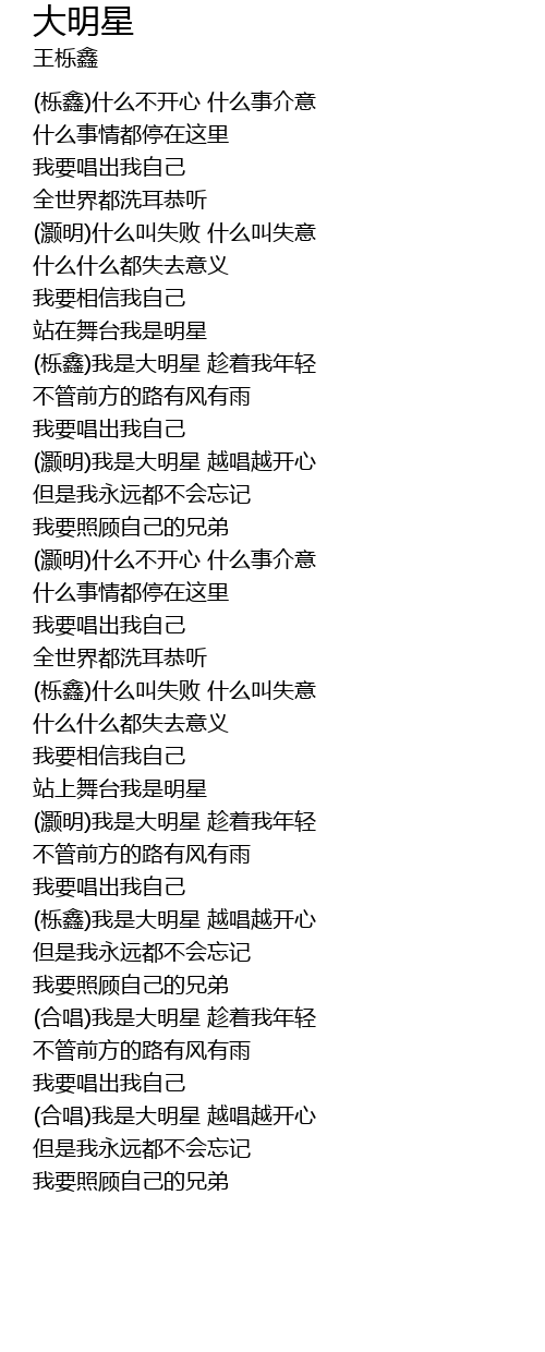 | [01:58.420] | (栎鑫)我是大明星 越唱越开心 |