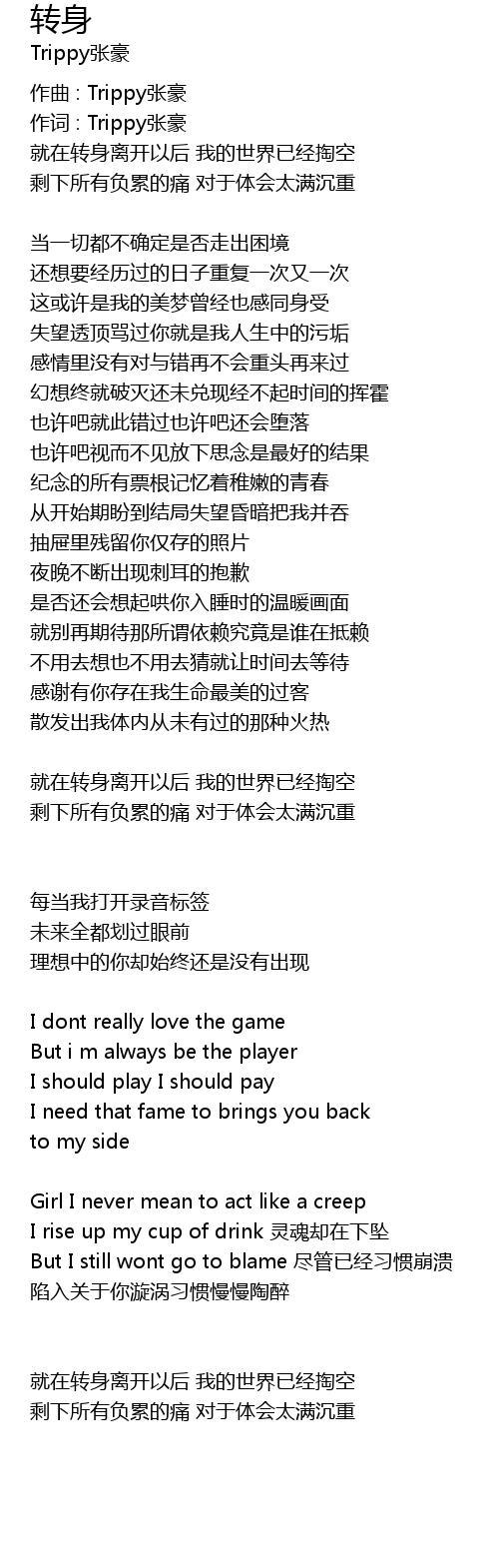| 作词 : Trippy张豪 | |