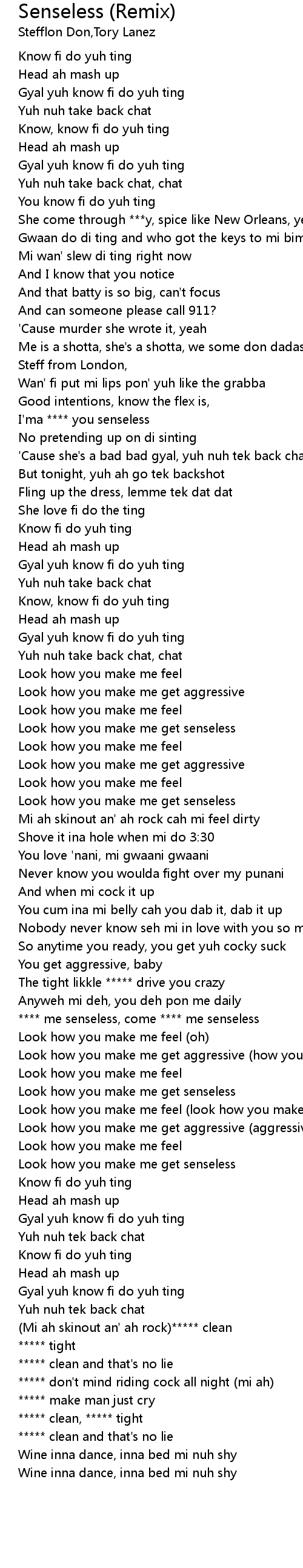 Senseless (Remix) Lyrics