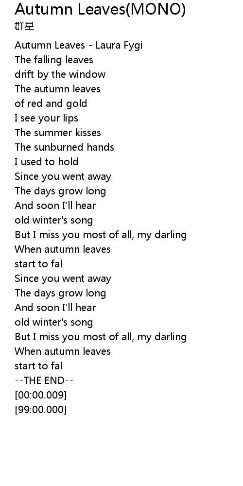 | [00:00.100] | Autumn Leaves - Laura Fygi |