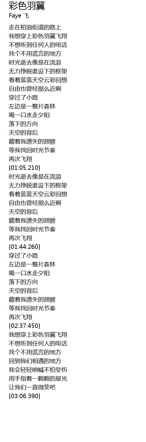 | [02:40.940] | 我想穿上彩色羽翼飞翔 |