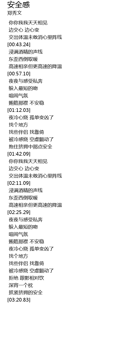 | [01:34.13] | 抱住挤拥中那点安全 |
