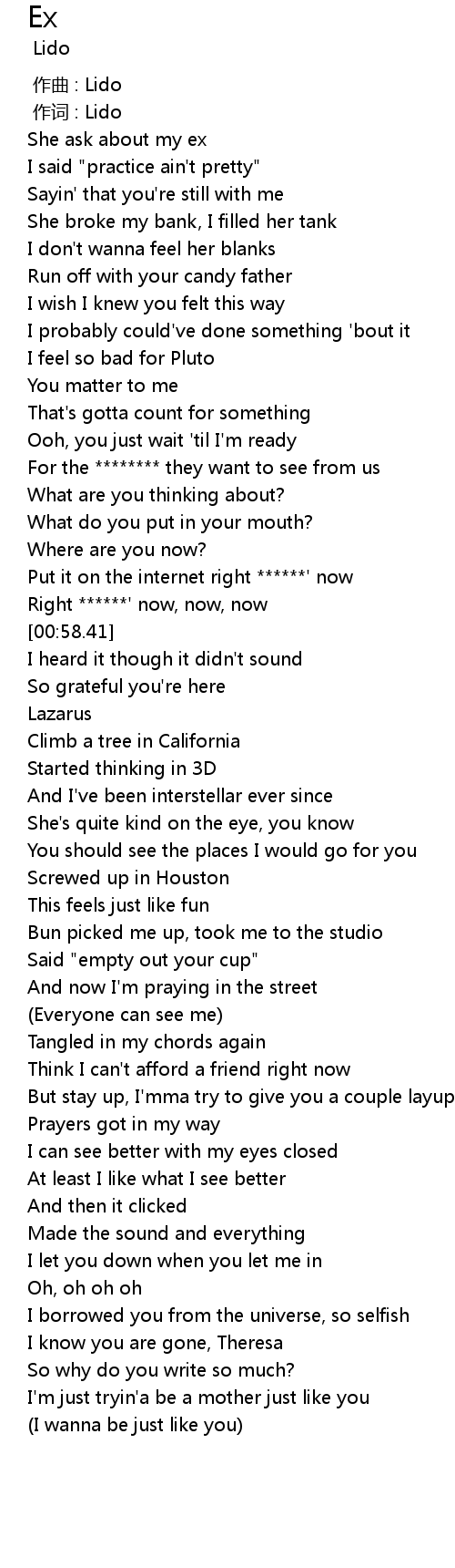 | [00:00.12] | She ask about my ex |