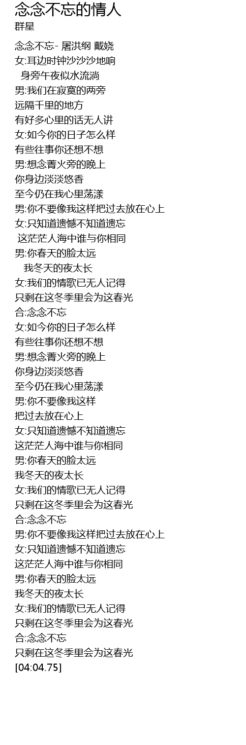 | [00:07.54] | 念念不忘- 屠洪纲 戴娆 |