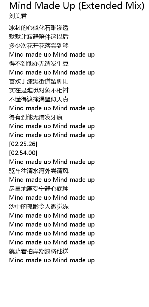 | [02:09.70] | Mind made up Mind made up |