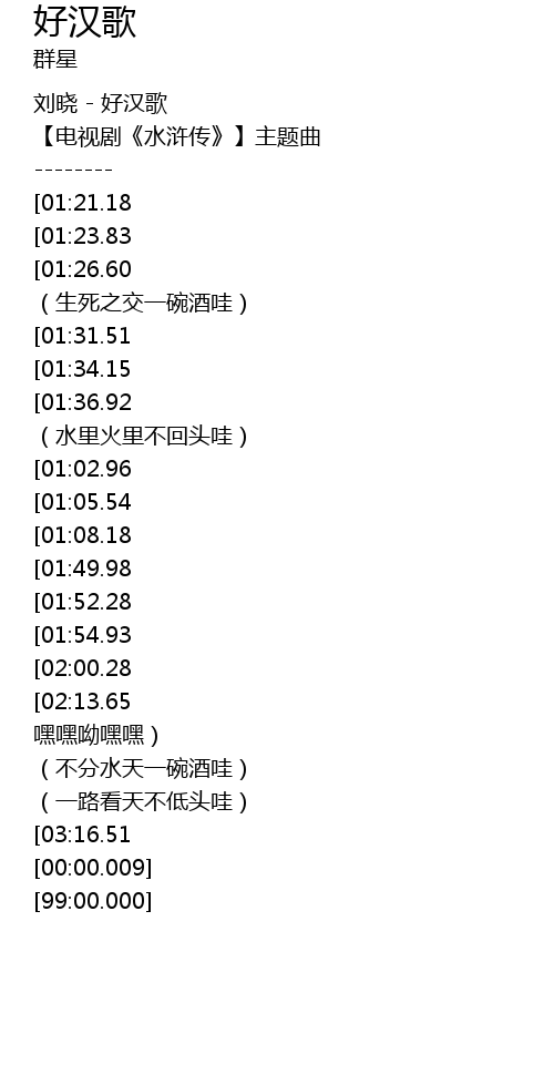 | [00:03.00] | 刘晓 - 好汉歌 |