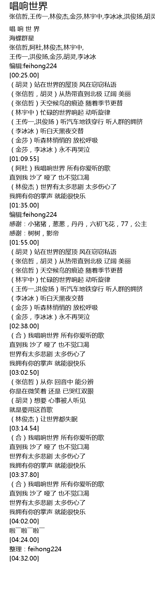 | [03:15.28] | (合)我唱响世界 所有你爱听的歌 |