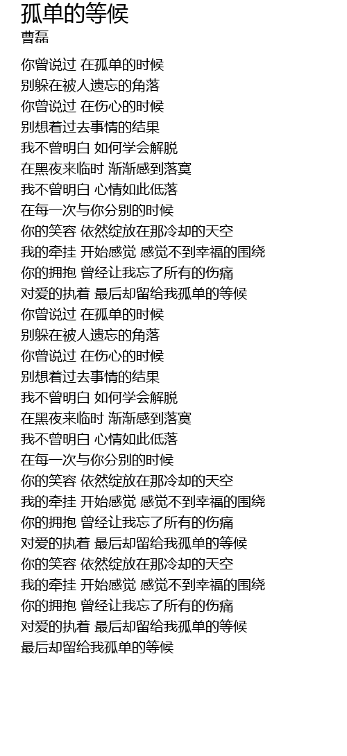 | [04:50.650] | 最后却留给我孤单的等候 |