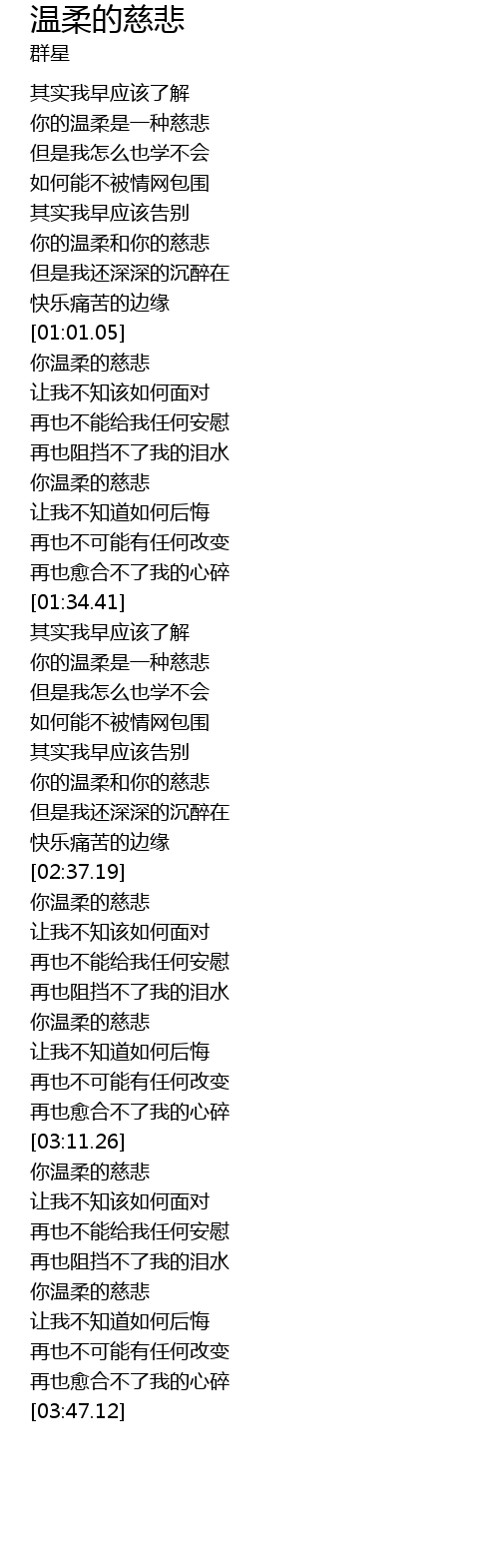 | [00:49.43] | 你的温柔和你的慈悲 |