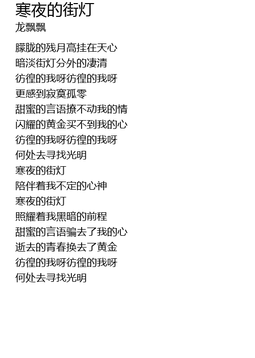 | [00:44.360] | 暗淡街灯分外的凄清 |