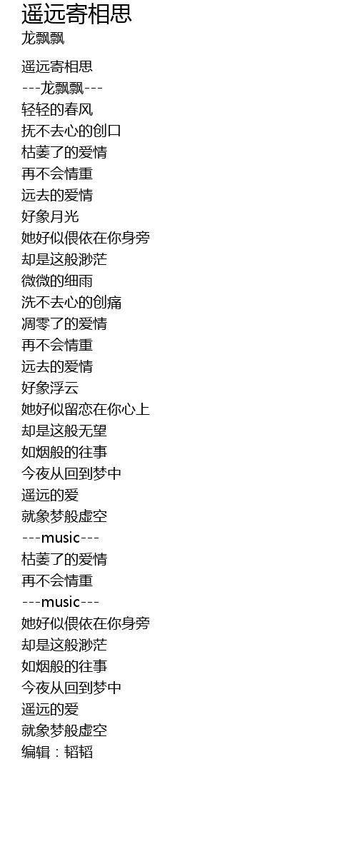 | [00:00.00] | 遥远寄相思 |