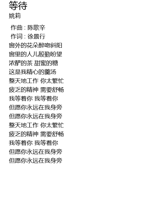 | [01:59.36] | wo deng zhe ni wo deng zhe ni |