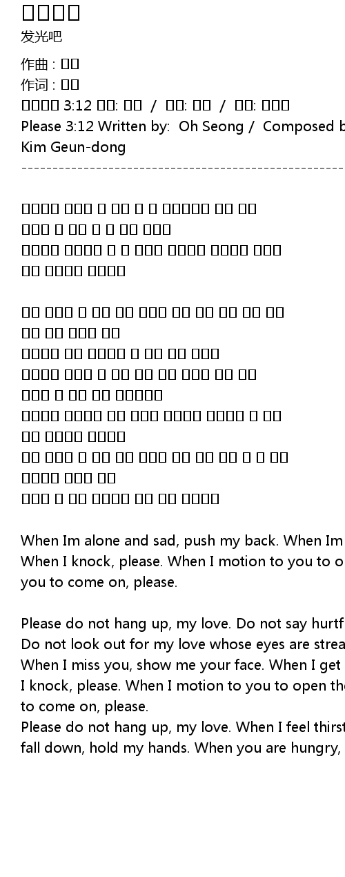 | Please 3:12 Written by: Oh Seong / Composed by: Song Gyeol / Arranged by: Kim Geun-dong | |