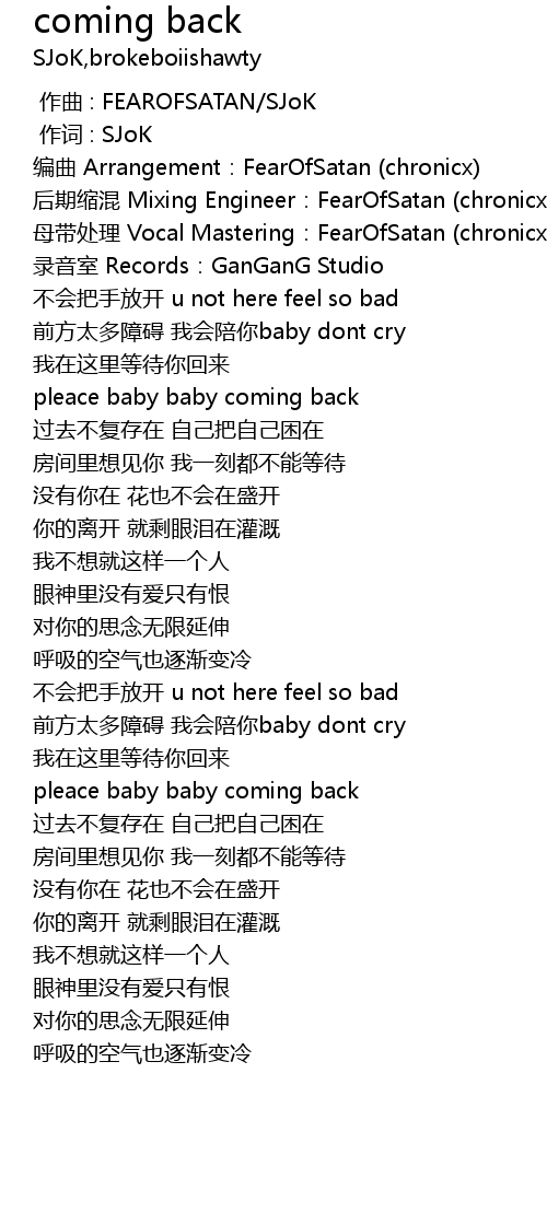 | [00:14.154] | 母带处理 Vocal Mastering:FearOfSatan (chronicx) |