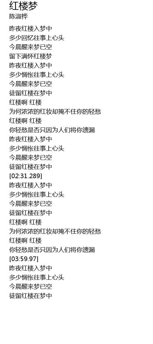| [03:44.218] | 红楼啊 红楼 |