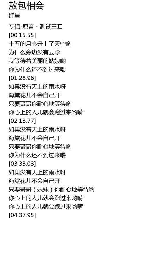 [04:06.76] 你心上的人儿就会跑过来哟嗬