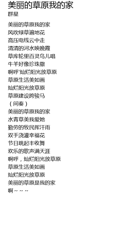 美丽的草原我的家 mei li de cao yuan wo de jia Lyrics