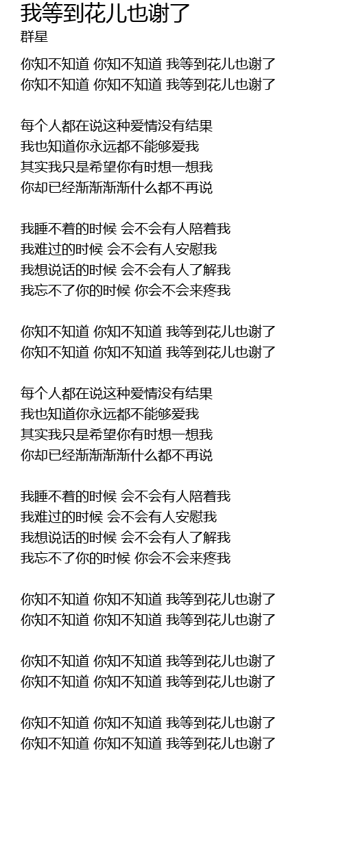 | 你知不知道 你知不知道 我等到花儿也谢了 |