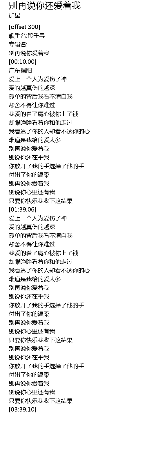 | [01:11.54] | 别再说你爱着我 |