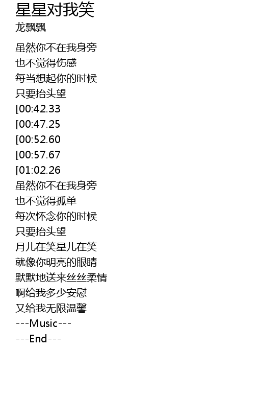 | [02:22.44][00:42.33] | 月儿在笑星儿在笑 |