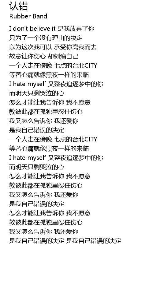| [00:19.95] | I don't believe it 是我放弃了你 |