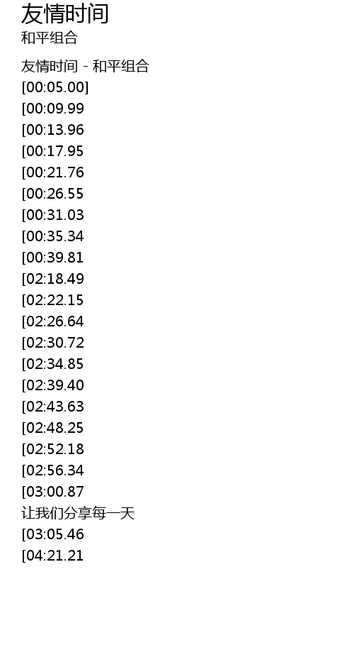 | [04:09.41][03:00.87][01:26.64] | 友情是我们永远最幸福的动力 |