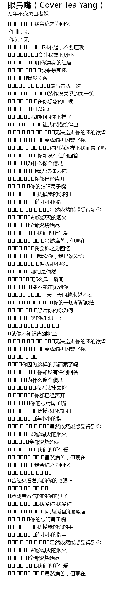 | [03:21.263] | nǐ de yǎn jīng bí zi zuǐ |