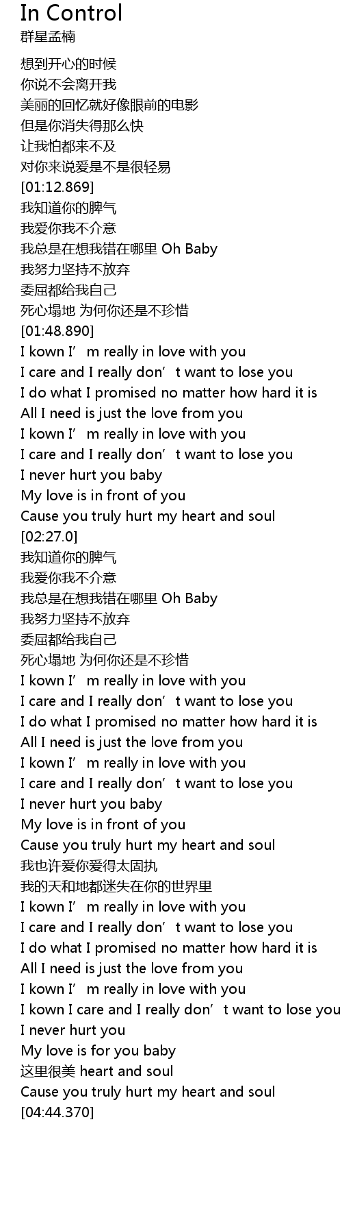 | [02:12.280] | I care and I really don' t want to lose you |