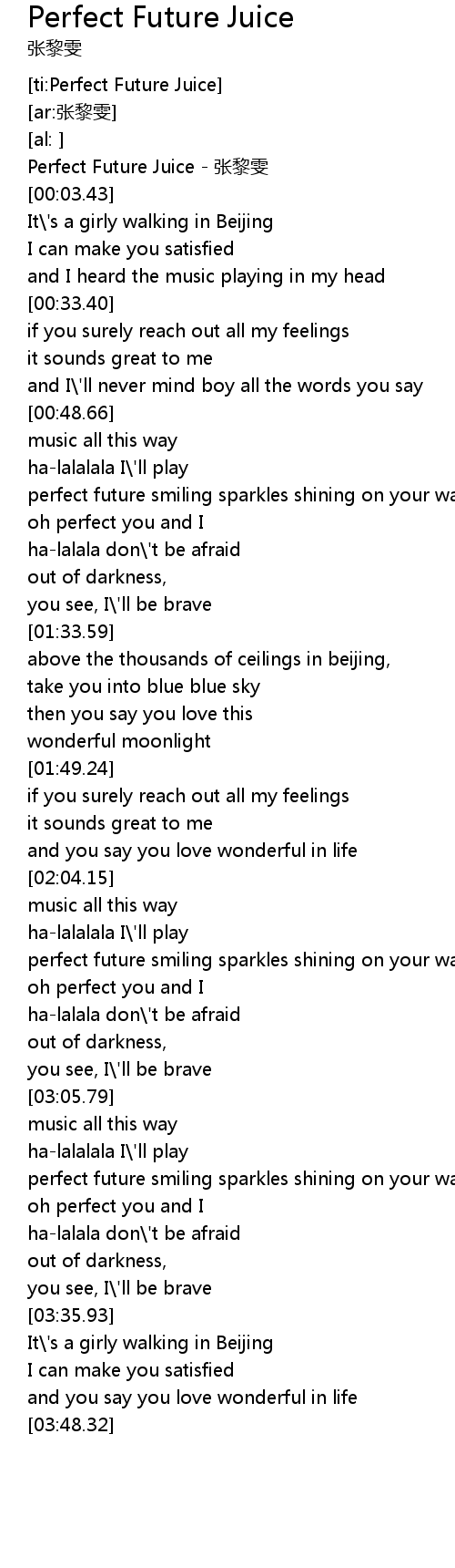 | [00:01.93] | Perfect Future Juice zhāng lí wén |