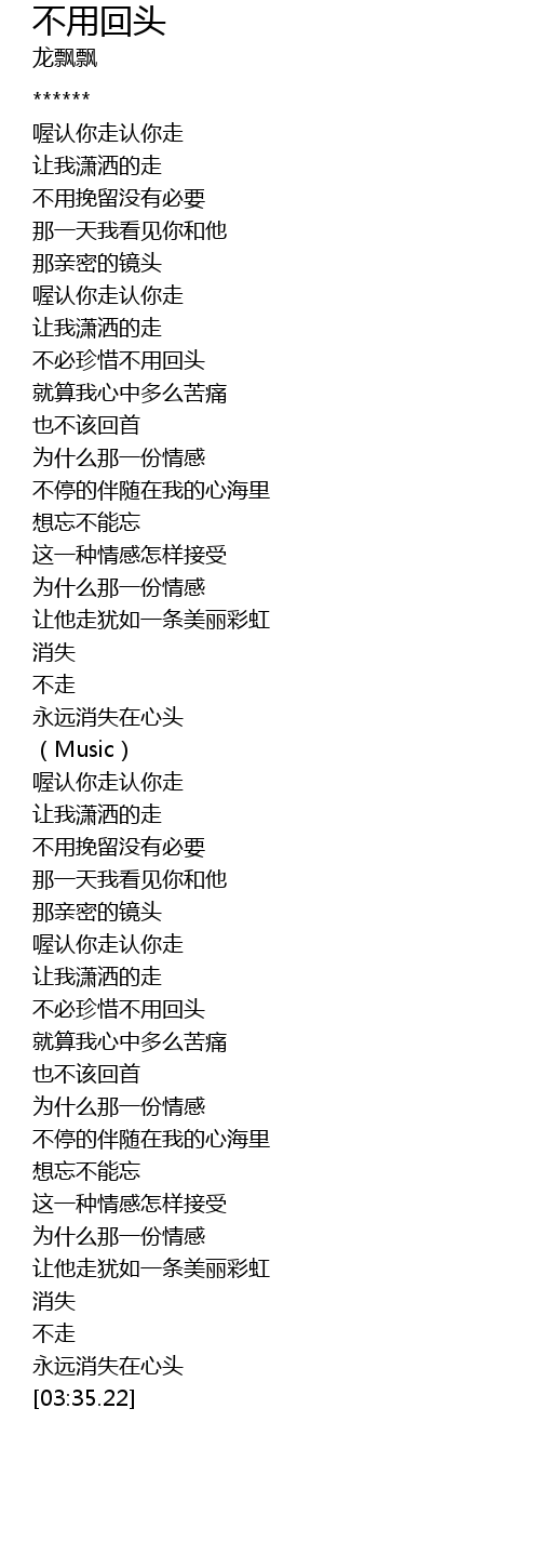 | [00:54.40] | bù bì zhēn xī bù yòng huí tóu |