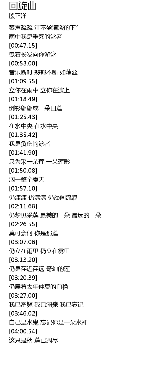 | [03:49.34] | 自己是水鬼 忘记你是一朵水神 |