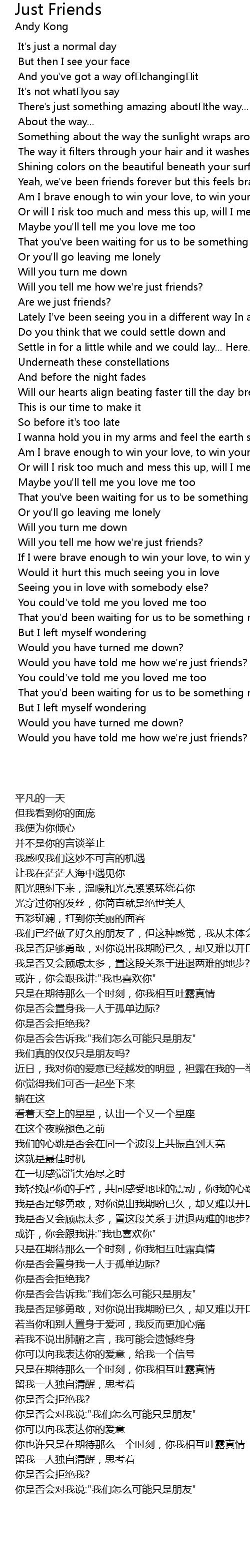| [03:01.777] | Would you have told me how we' re just friends? |