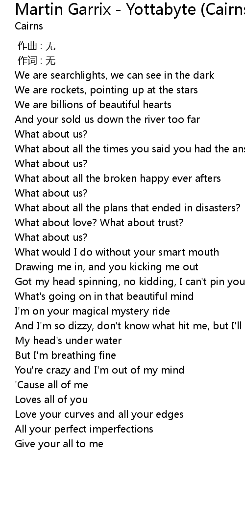 | [02:20.919] | You' re crazy and I' m out of my mind |