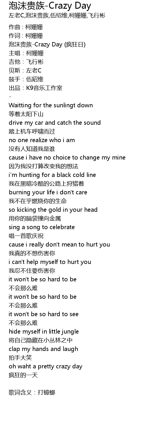 | pào mò guì zú Crazy Day fēng kuáng rì | |