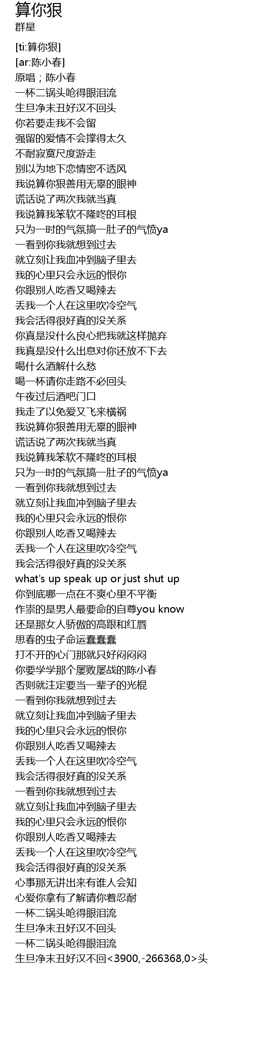 | [00:40.473] | 我说算你狠善用无辜的眼神 |