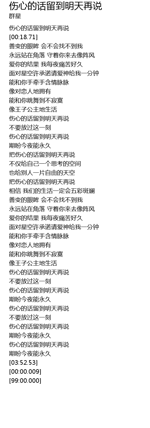| [03:19.65] | shāng xīn de huà liú dào míng tiān zài shuō |