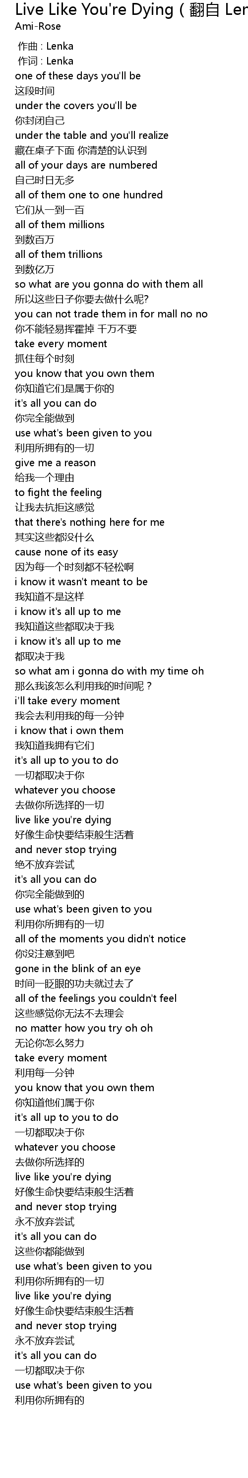 | Song | Live Like You're Dying(翻自 Lenka) |
